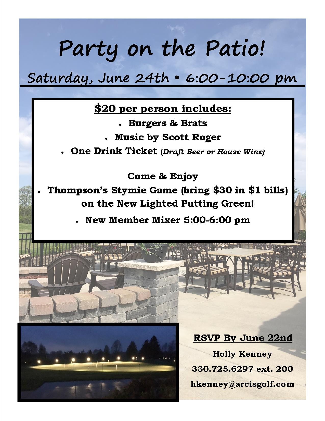 Join us for a fun evening on the patio including delicious food, music by Scott Roger and a Stymie Game on the new Lighted Putting Green!